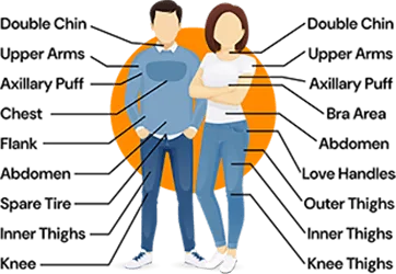 Commonly treated areas include the belly, love handles, thighs, arms, back fat, and double chin. A doctor assessment helps identify which areas are suitable for you.